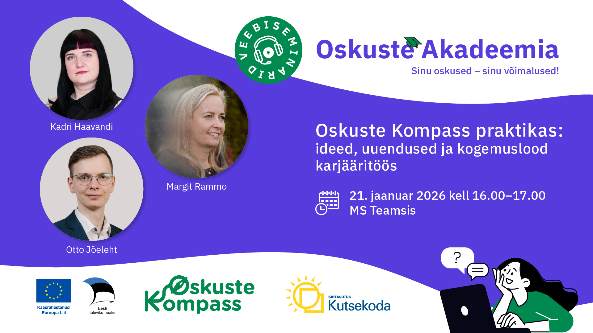 Seekordne Oskuste Akadeemia veebiseminar toimub koostöös Haridus- ja Noorteametiga ning Eesti Karjäärinõustajate Ühinguga.
