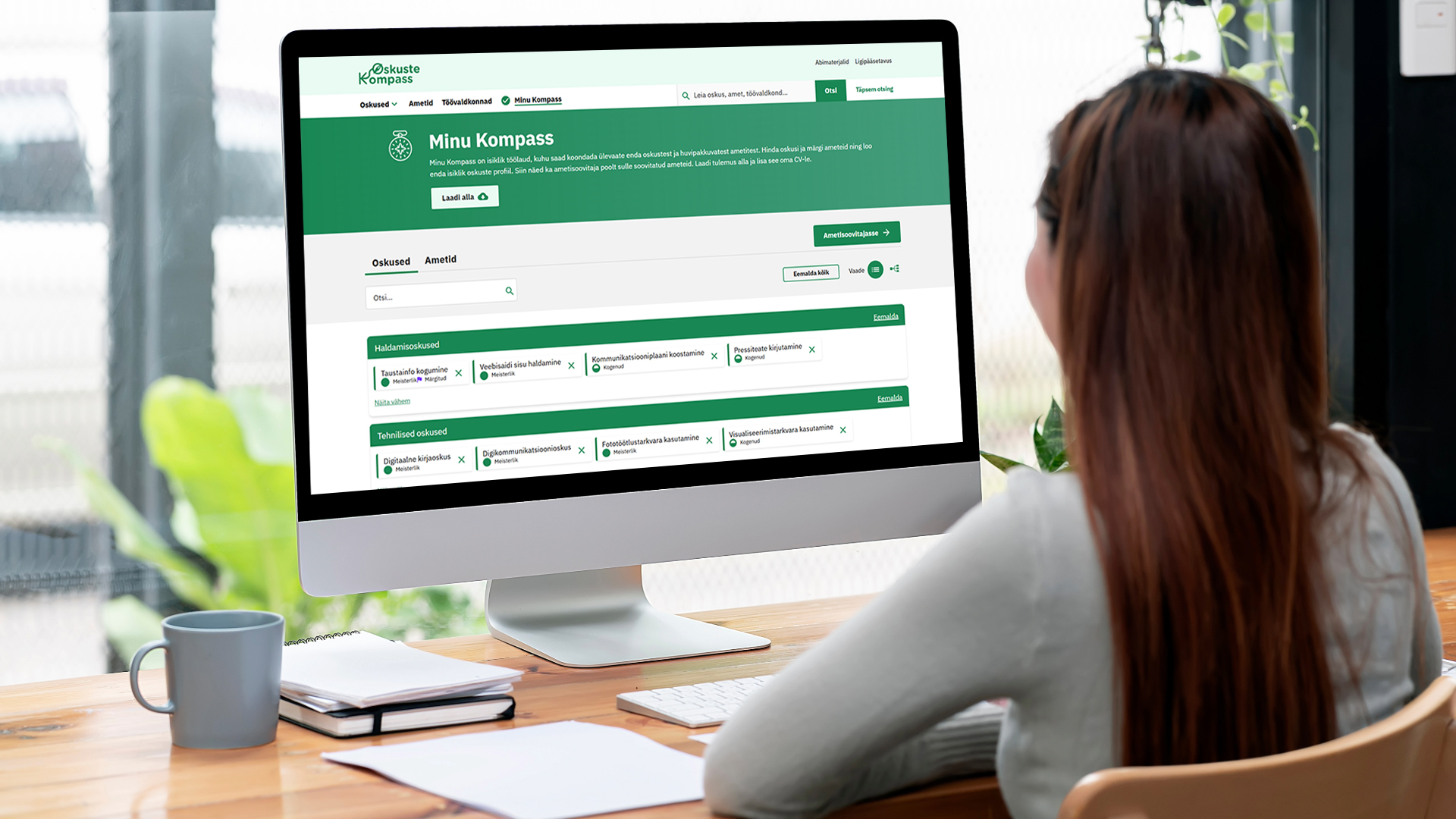 Minu Kompass on isiklik töölaud, kuhu saad koondada ülevaate enda oskustest ja huvipakkuvatest ametitest. Hinda oskusi ja märgi ameteid ning loo enda isiklik oskuste profiil. Siin näed ka ametisoovitaja poolt sulle soovitatud ameteid. Laadi tulemus alla ja lisa see oma CV-le.