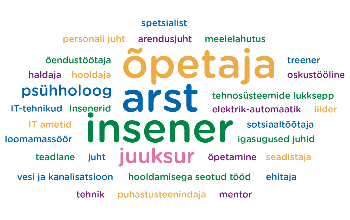 Rühmatöö ülesanne: nimeta kolm ametit või rolli, mis on aastal 2035 tööturul kindlalt olemas. Kutsekoja tulevikutrendide visioonipäeval 25.08.2025 osalenute arvamus.